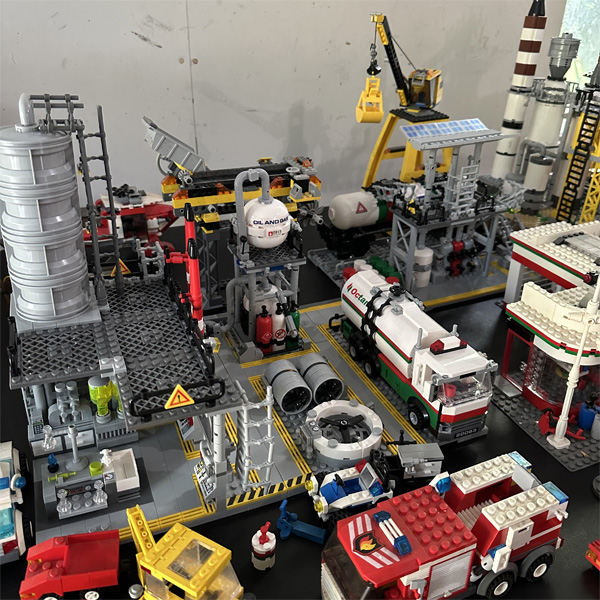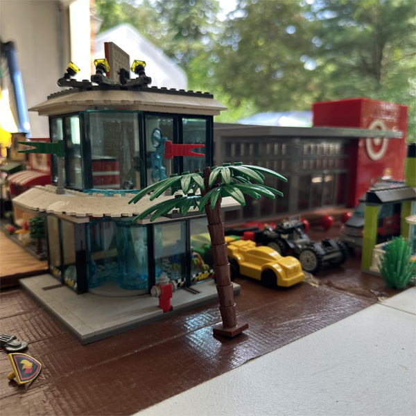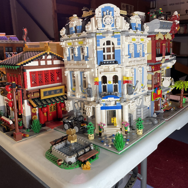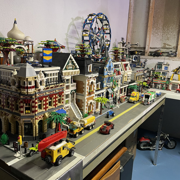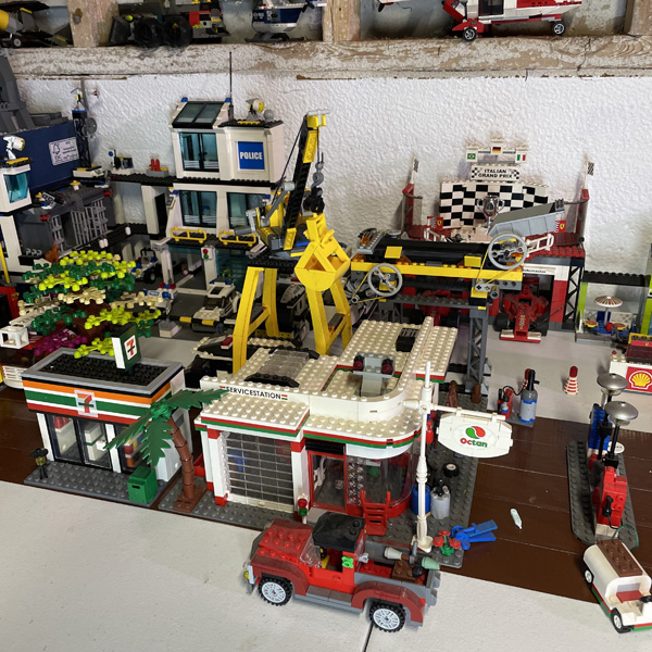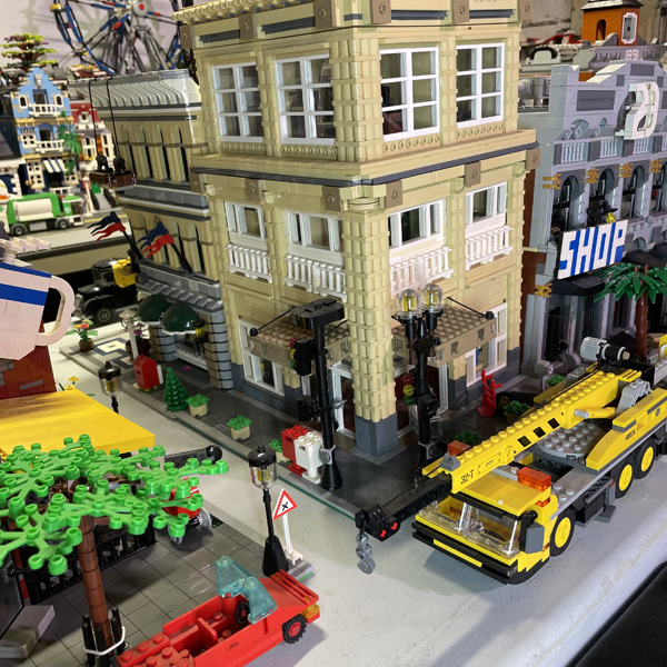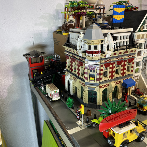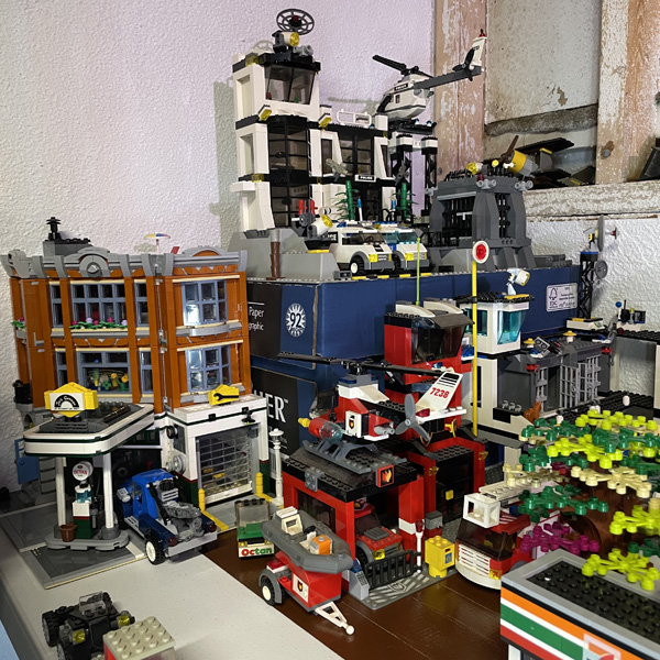 This is a Lego city I've been working on since 1996. Because of many additions and subtractions over the years, it has been rearranged several times to suit the setup. I've lived in many houses in my life, so as the city as grown larger, it has become harder to move to other locations. As it stands, the current setup takes up 5 full size folding tables and 2 small coffee tables. It is zoned for residential properties and commercial properties, all for the most part on their own tables. The images below, although don't do much justice to seeing it in person, show off some of the detailed designs of the structures. Generally, the photos follow the city from west to east. Enjoy!