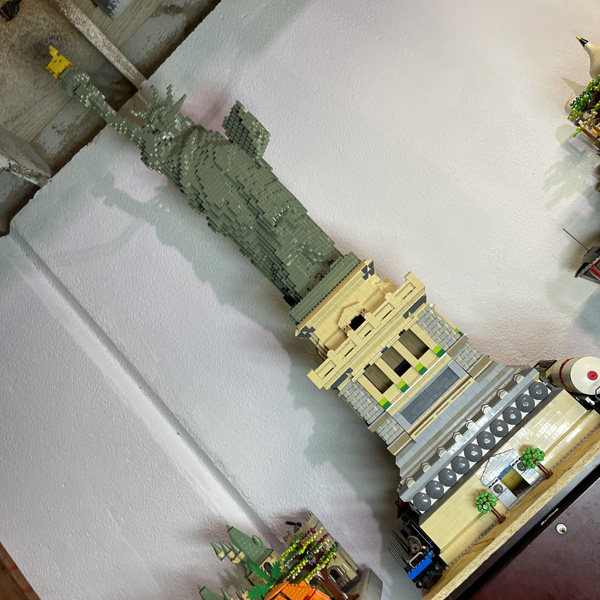 I enjoy using Lego as an unusual medium for painting and illustration, hence all of the murals I build using them. But as you've no doubt noticed, I've built and large city as well. Back in the late 90's, Lego created a version of the Statue of Liberty. It's a wonderful model, however, it was incomplete. I've built a replica pedestal with a little twist, as can be seen in person at the real statue in NY.